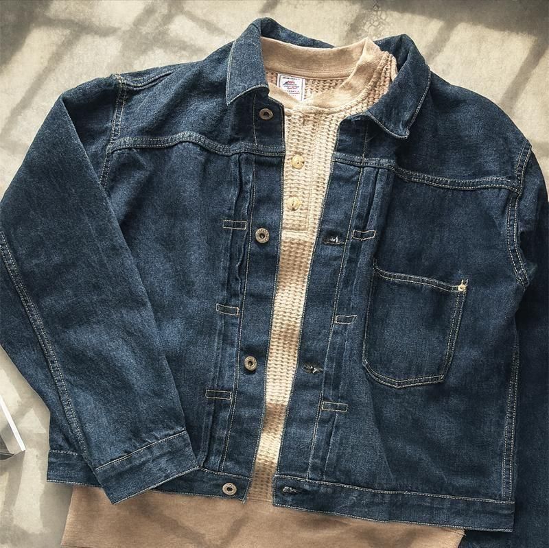 戦時中のワークジャケットをモチーフに、レミレリーフならではの感性で再構築した「12oz DENIM 大戦モデル JKT」。